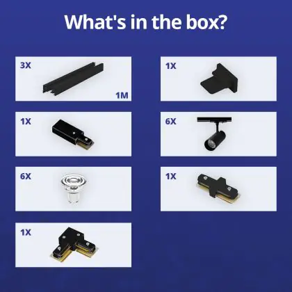 | Nome del fabbricante | Complete L shaped 1-Phase Track Set Black incl. 6x Spot fixture + GU10 2700K 3W Dim – 1 x 2 meter i | |
