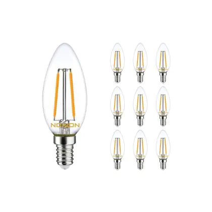 Descrizione Confezione Multipack 10x Noxion Lucent LED E14 Candela Filamento Chiara 2.5W 250lm - 827 Bianco Molto Caldo | Sostitutiva 25W