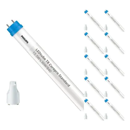 Il Confezione Multipack 10x Philips Tubo LED T8 CorePro (EM/Mains) 18W 2000lm - 840 Bianco Freddo | 120cm - Sostitutiva 36W è l’alternativa perfetta per il tubo fluorescente standard 36W nelle plafoniere con un reattore. Con questo tubo LED hai una garanzia di una vita media utile molto lunga e 2 anni Lampadadiretta.it di totale garanzia. .
