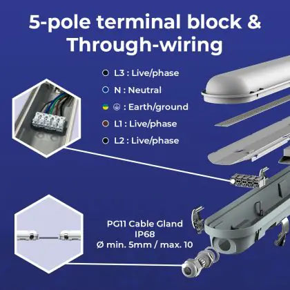 Confezione Multipack 4x Noxion Stagna LED Poseidon V3.0 10-18W 1300-2520lm - 830-865 CCT | 60cm - Cablaggio Entra/Esci (5x2.5mm2)