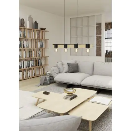 Eglo Luce Pendente Bailrigg Acciaio Legna Nero Marrone | IP20 - Adatto per 4x E27