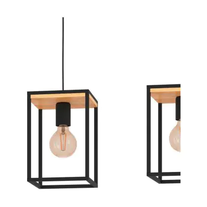 Eglo Luce Pendente Libertad Acciaio Legna Nero Marrone | IP20 - Adatto per 3x E27
