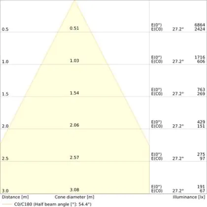 L'apertura del fascio luminoso indica l'angolo del fascio di luce proveniente da una lampada o lampadina. Si misura in gradi (D) e più piccolo è l'angolo, più piccola è l'apertura del fascio di luce.