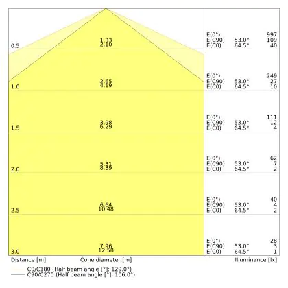 Il numero di lumen (lm) è la resa luminosa di una fonte di luce. Più alto è il numero di lumen, più luce emette la fonte luminosa. Il wattaggio e il numero di lumen non sono collegati tra loro. Una lampada a LED con un basso wattaggio può avere un numero di lumen più alto di una lampada convenzionale con un alto wattaggio.