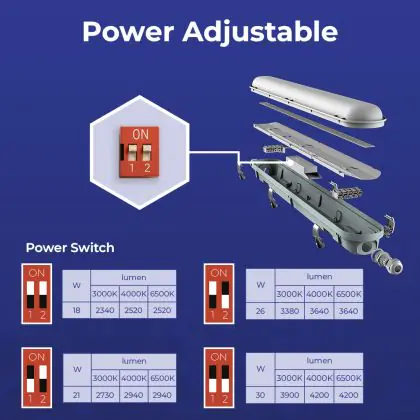 Descrizione Noxion Stagna LED Poseidon V3.0 30W 3900/4200lm - 830-865 CCT | 120cm - Cablaggio Entra/Esci (5x2.5mm2) - Sensore Di Movimento E Luce