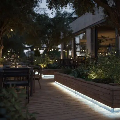 Questa fonte di luce può sempre essere utilizzata per l'illuminazione d'accento. Per usarla invece come illuminazione generale bisogna considerare l’emissione luminosa e l’apertura del fascio di luce. Questa striscia LED è lunga 5000 mm e ha una potenza luminosa di 680 Lumen. Dividendo il numero di Lumen per la lunghezza della striscia LED troverai la potenza luminosa per metro. Le strisce LED hanno generalmente un fascio di luce ad ampio angolo, che non fa eccezione per questo articolo: °. Clicca qui per scoprire quanti lumen servono in ogni stanza.