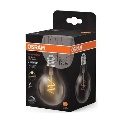 La Osram Vintage 1906 LED E27 Globe Filamento Chiara 4.6W 470lm - 927 Bianco Molto Caldo | Miglior Resa Cromatica - Dimmerabile - Sostitutiva 40W è la perfetta sostituzione per la tua lampada convenzionale 40W con attacco E27 grazie alla sua tecnologia LED. Passare a LED ti offrirà tanti vantaggi!
