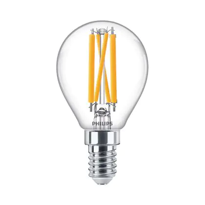 La lampada Philips Master Value LED Lustre E14 Sferica Filamento Chiara 3.4W 470lm - 927 Bianco Molto Caldo | Miglior resa cromatica - Dimmerabile - Sostitutiva 40W è il sostituto perfetto per le tue vecchie lampade 40W con attacco a vite piccolo E14 grazie alla sua tecnologia LED. Passare a LED ti offrirà molti vantaggi!